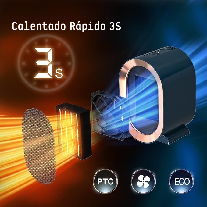 Calienta en 3 segundos gracias a su tecnología cerámica PTC.